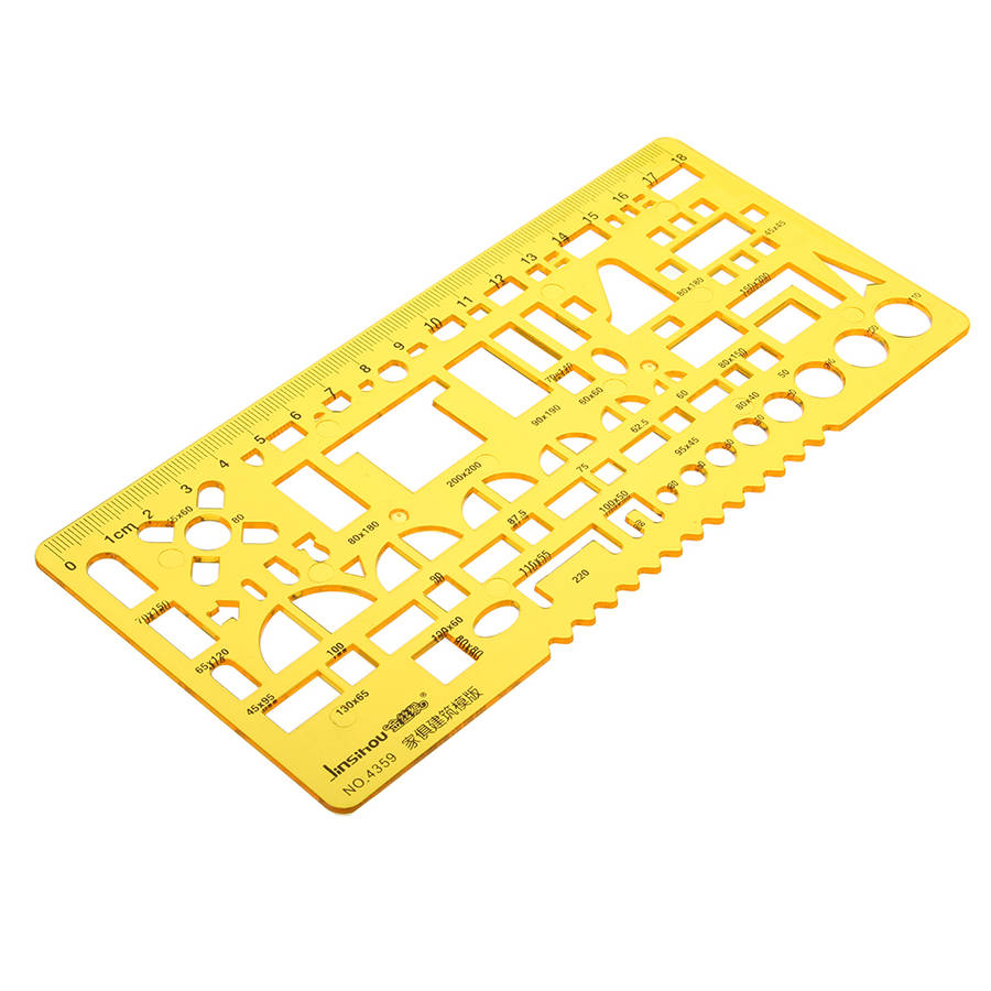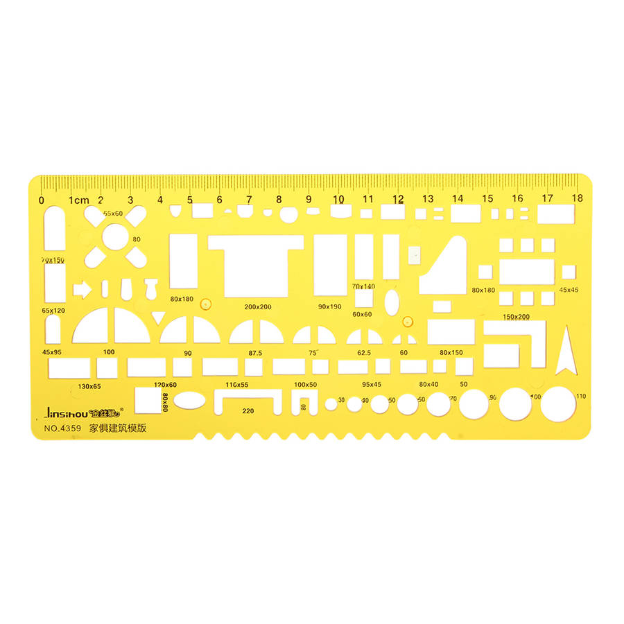 Specification: Material: K Plastic (Soft Plastic) Type: Furniture House Architecture, Interior Design Length: 18.9cm? Width: 9cm ? Features: - Made from transparent orange, soft plastic. More flexible than traditional green plastic, can be bent and not easy to break.? - The rate of transparency allows you to see the drawing below template for easy positioning. - The templates eliminate the time consuming job of furniture symbols, make it more efficient for design work. - Easy for decoration art design, drafting, drawing for home, school, office and more use. ? Package Included: 1 x Furniture House Architecture Template Ruler