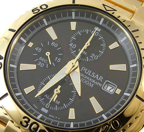 PULSAR made by Seiko MENS GOLD TONE ALARM CHRONOGRAPH