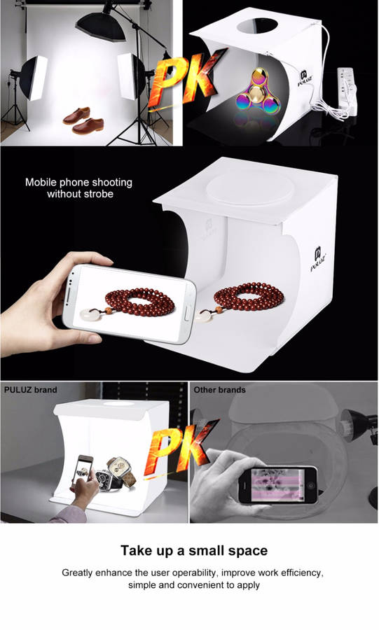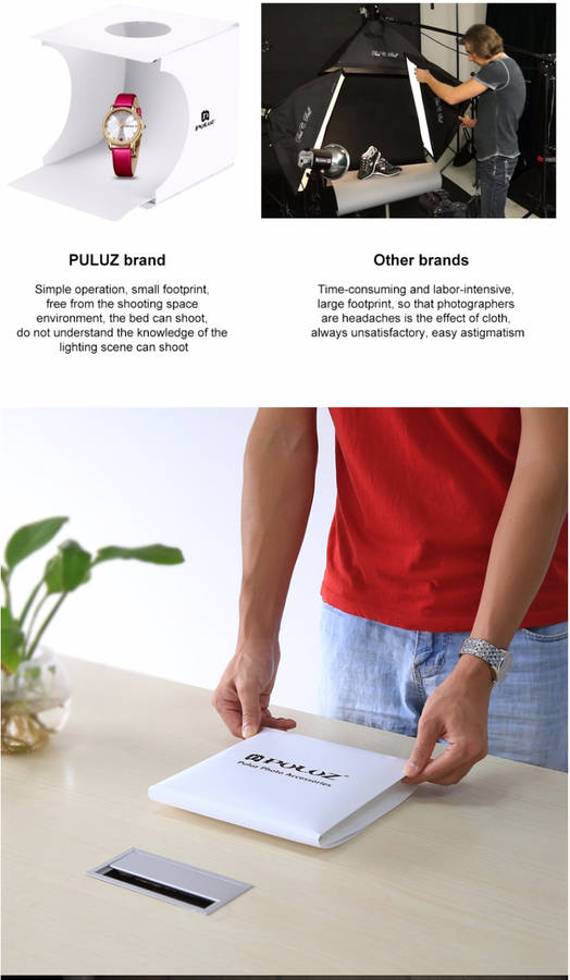 Light box Studio allows quick and easy shooting of small products such as jewelry, accessories, toys, watches, gadgets and other items.