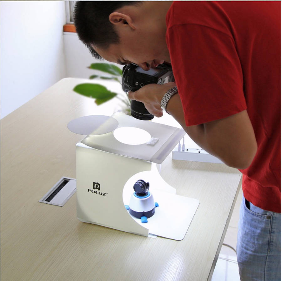 Assemble your own photo studio anywhere in minutes, you can unfold this LED studio and place it on any surface to get the perfect backdrop for small articles business photography, taking pictures for products.