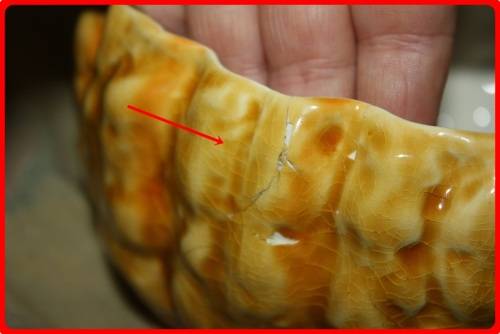 CONDITION:HAS A CRACK ON SIDE SEE PHOTO ARROWS AND A FEW NIBBLES ON INSIDE (NOT IN PHOTOS)