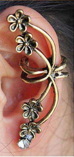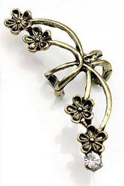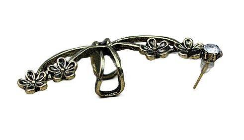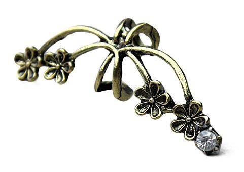 Punk Antique Crystal Bronze Tone Metal Flower Ear Cuff Wrap Clip Earrings