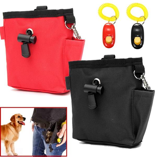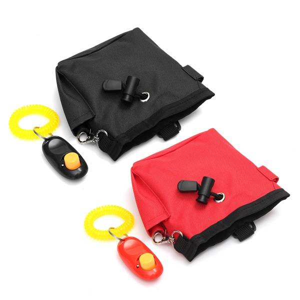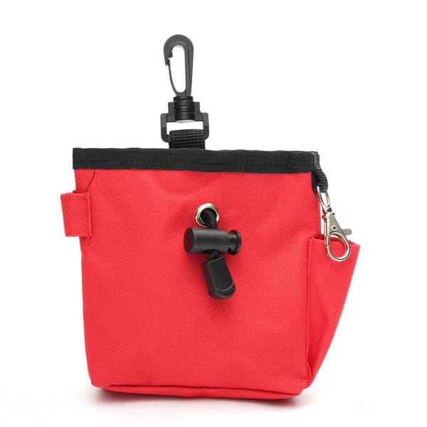 Description: Puppy Dog Pet Treat Training Bait i-click Ball Pouch Clicker Waist Dog Food Bag Made of high quality canvas,very durable,and the inner bag can turn out, convenient to clean. Excellent pet training tool,with a zipped compartment on the back of the pouch where you can hide the treats or keep your whistle or personal items such as keys zipped away, a pouch for a clicker, two handy hooks, target stick holder and belt clip. Pull rope design,can easily put mobile phone or other things,prevent food fall out. Metal hook can ring piece hanging on the side. Side pocket disign ,convenient dropping items. One the back of the hang buckle,can hang the bag on the waist. Specifications: Material:CanvasSize: Color:Black,Red Package Includes: 1 x Training Bag 1 x Clicker