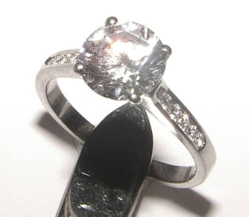 GORGEOUS RING WITH WHITE ROUND BRILLIANT CUT SIMULATED DIAMONDS MAIN STONE SIZE - 8,00mm BEAUTIFULLY SET IN .925 STERLING SILVER .925 STERLING SILVER - SOLID, NOT COATED!
