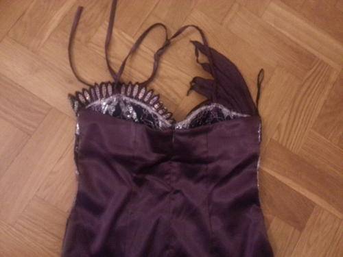 FLOOR LENGTH PURPLE AND SILVER DRESS WITH CUT OUT DETAIL AND HALTER NECK