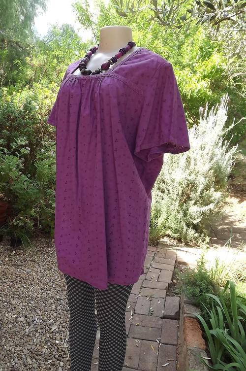 Purple Broidery Anglaise Cotton Donna Claire Loose Hanging Top in size 18/42 - very good condition
