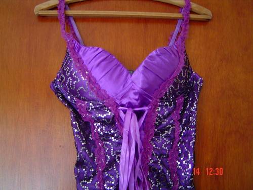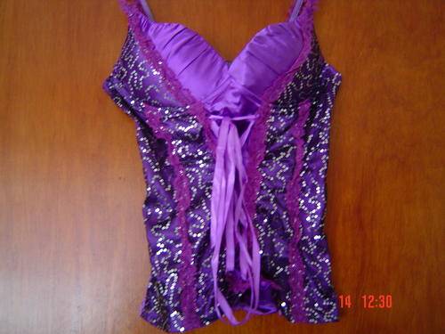 Stunning purple corset top with bling!! Size XL. Padded cups and ribbon on the front. Elastic back. Brand new to big for me.