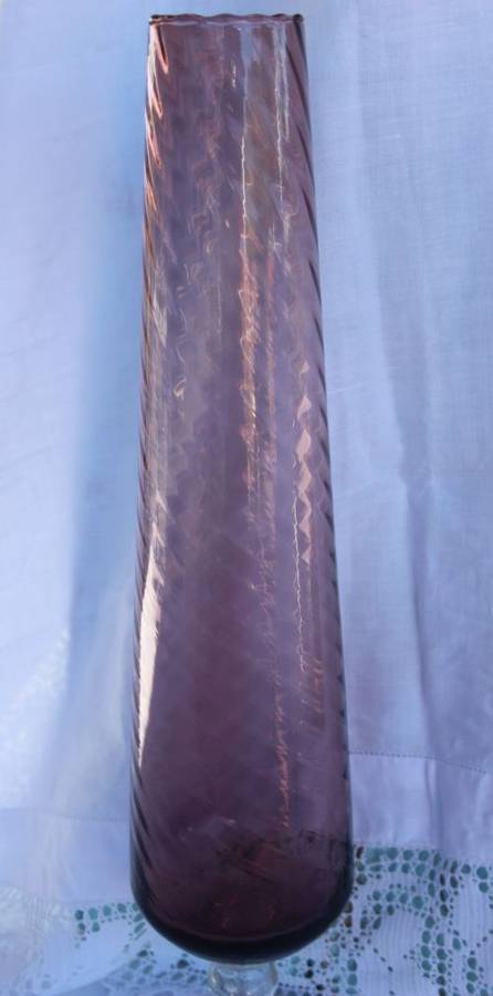 PURPLE GLASS VASE   HEIGHT  50 CM    ITEM IN GOOD CONDITION    POSTAGE   R 100