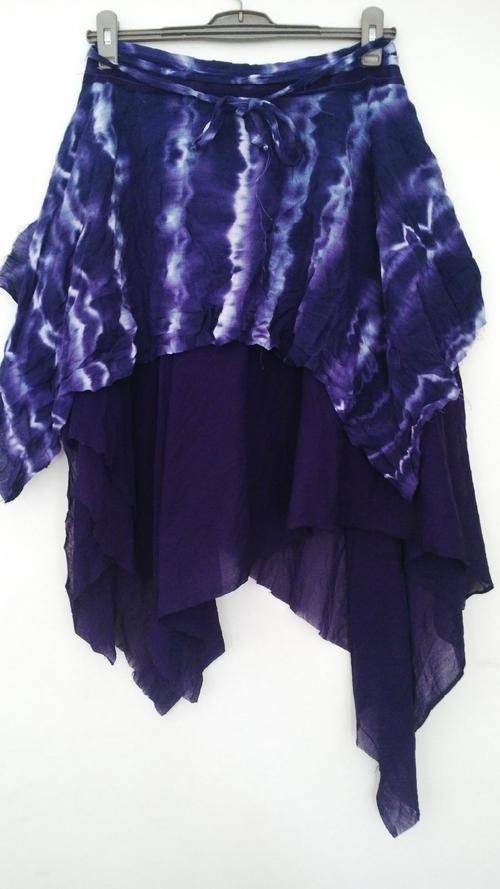 Purple Tie Dye Wrap around Hippy Skirt by Freedom, med length hand made by local designer Lise Field