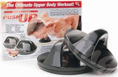 The difference compared to simple push ups is that you train in a raised position: The upper body has to be lowered more which intensifies the exercise. And as opposed to conventional push up grips, the ball bearing grips allow you to turn your arms in a controlled position while exercising: To the outside while lowering the body, to the inside when pushing up. The effect: Clearly more muscles are exercised and strengthened, wrists and elbow joints experience less stress and strain. Made of plastic. Base and grips with non-slip rubber base. Size of each grip 20cm (8") in diameter x 8cm (3"), weight for both approx. 700g (1.5 lbs).