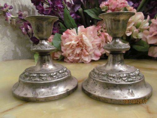 VINTAGE 1950's PAIR OF SILVER PLATED IANTHE CANDLESTICKS WITH EMBOSSED PATTERNING