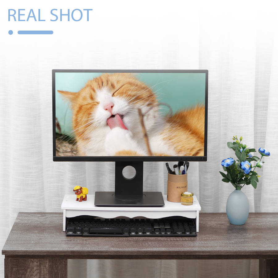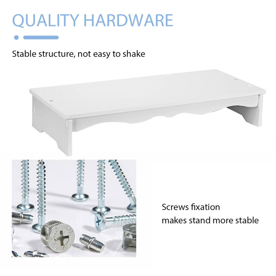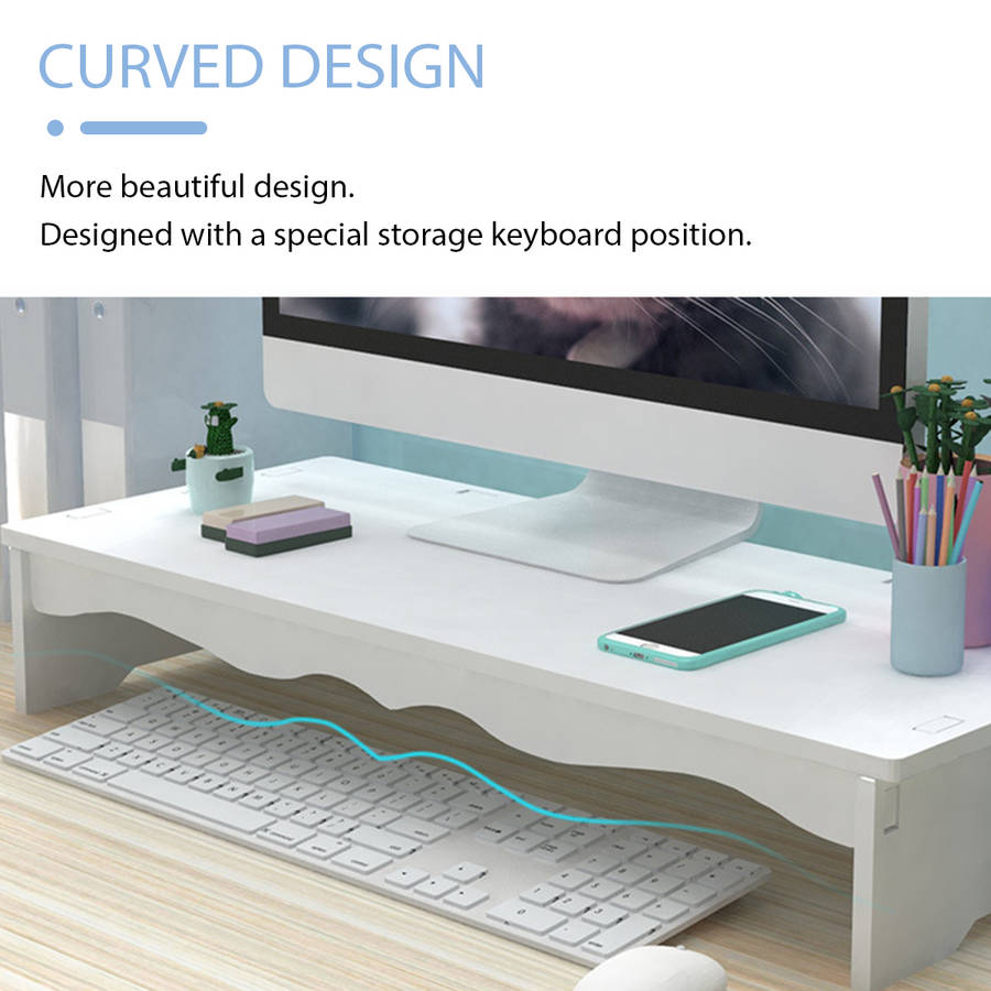 Features: a Made of PVC board, moisture proof, mildew proof. a The heightened computer monitor can give you a comfortable viewing angle and prevent neck and shoulder pain. a There is a special storage keyboard position, which can be stored in without using the keyboard, which is convenient and tidy. Specifications: a Color: White a Material: PVC a Assembled size: 48x8.5x20cm/18.9x3.35x7.87 [Conversion: 1cm=0.3937 inch, 1inch=2.54 cm] Package Included: a 1 x Computer heightening stand Note: a Due to different producing batches, product details might be a little different. If you minding the difference, please buy it carefully. a Please allow 1-3CM differs due to manual measurement. a Due to the different display and different light, the picture may not reflect the actual color of the item. Thanks for your understanding.