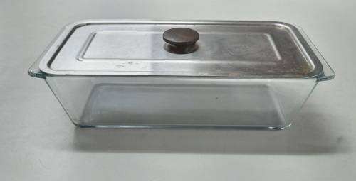 Loaf bread pan has no chips may have some scratches from using, with steel lid and has some rusting on but sure can be fixed, it's a must have for your collection can also be used to warm up food.