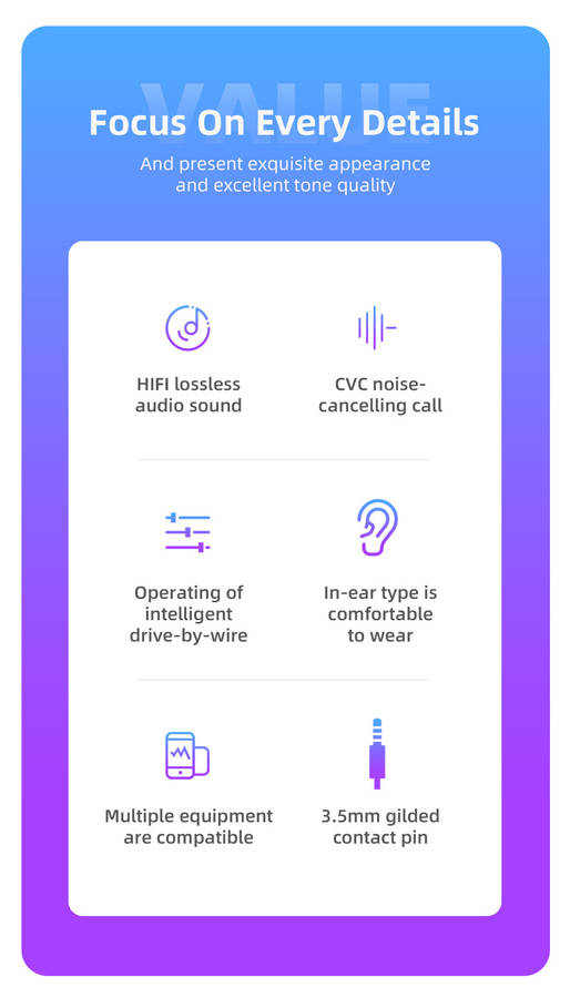 Features: -With full-frequency high-end plated diaphragm, the product can provide a more powerful sound and bring a more hearty transient response and a majestic sense of low volume. -Both aesthetic appearance and outstanding acoustic performance can well satisfy your different using needs. -The TPE fiber is resistant to pulling and is fully compatible with wire control. -The length of the product is 6cm, the width is 5cm, and the height is 1cm. The dynamic transient performance is more accurate, the sound field is restored to reality, and the product can cope with pop music, classical music and rock and roll. -It is suitable for sports, fitness, music, etc. Specification: Brand model: QKZ AK6-X Item Name: Earphone Material: TPE Sensitivity: 98dB±3dB@1000Hz Plug Diameter: 3.5mm Frequency Response Range: 20-20kHz Moving Coil: 10mm Speaker Resistance: 16±15% Size Details: 6cmx5cmx1cm/2.36x1.97x0.39(Approx.) Cable Length: 120cm/47.24(Approx.) Package Includes: 1 x Wired Earphone 4 x Ear Pads