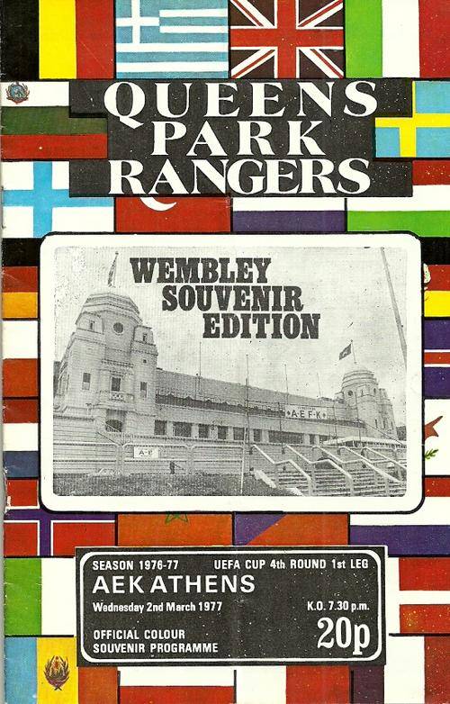 QPR v AEK Athens ( Greece ) 1976/77 UEFA Cup 4th Rnd, 1st Leg Match Programme