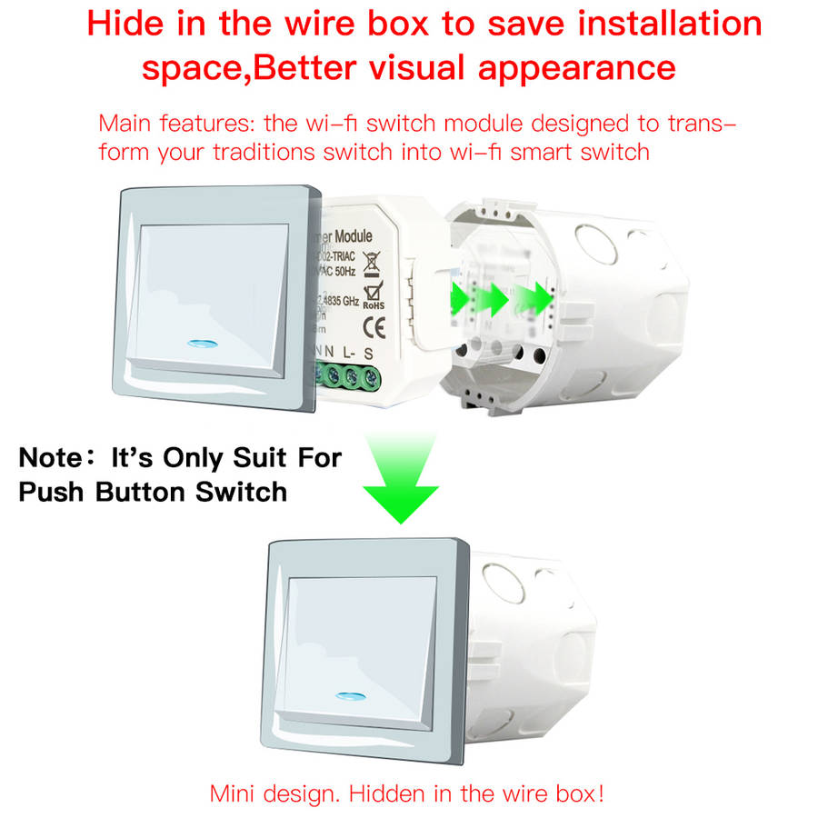 Dimming wifi switch: 1.Small size, hidden in the switch box