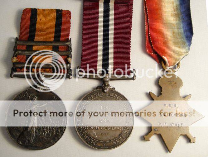 The 1914-15 Star was awarded to RSM. B.R. Tomkins P.F. Staff.