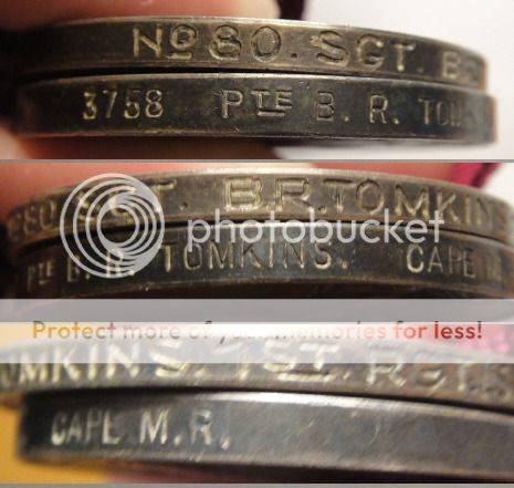 The QSA (with Cape Colony and SA 1901 and 1902 clasps) was awarded to 3758 B. R. Tomkins, Cape M.R.