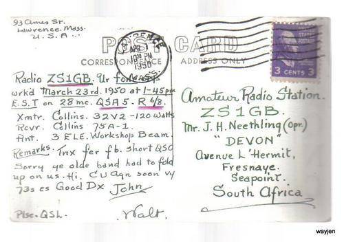 QSL/AMATEUR RADIO USED CALLING CARD. AMATEUR RADIO PICTURE. 1950.CARDS HAVE WEAR AND TEAR.