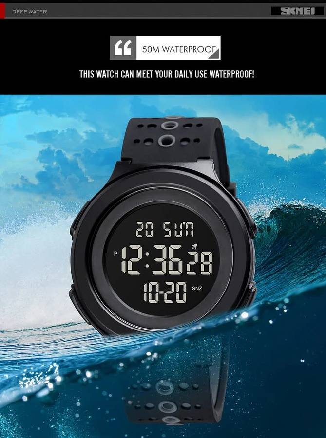 Quality, 50mWaterproof, Large Clear Digits, Genuine Silicone Strap , Dual Time, Luminous night-light