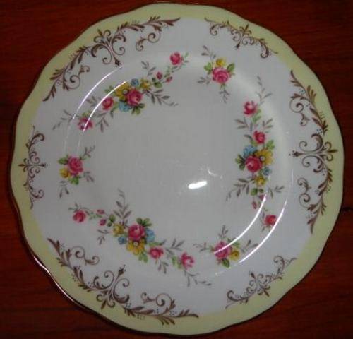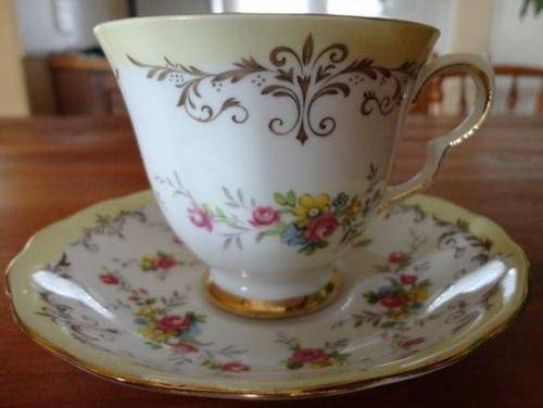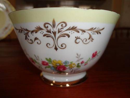 PALE YELLOW EDGING WITH GREY AND BRIGHT FLORAL DECORATION.