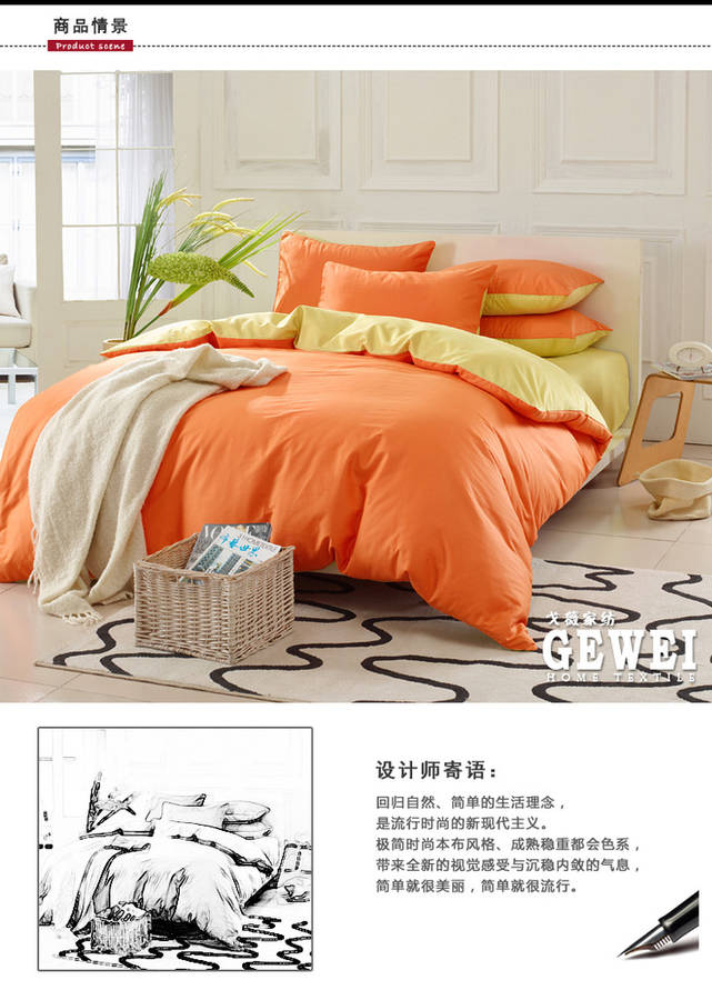 queen size duver bed sets, 100% cotton, 4 pieces, super grade quality! 2.5kg, color orange & yellow