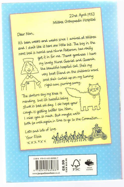 Then tragedy strikes. Nan and Elsie both fall ill with tuberculosis, and Elsie finds herself whisked away to the children's ward of the hospital. Confined to bed for months on end, Elsie finds it very hard to adapt to the hospital's strict regime. But she invents astonishing ways of entertaining the other children on the ward, and for the first time finds herself surrounded by true friends -- including Queenie, the hospital's majestic white cat.