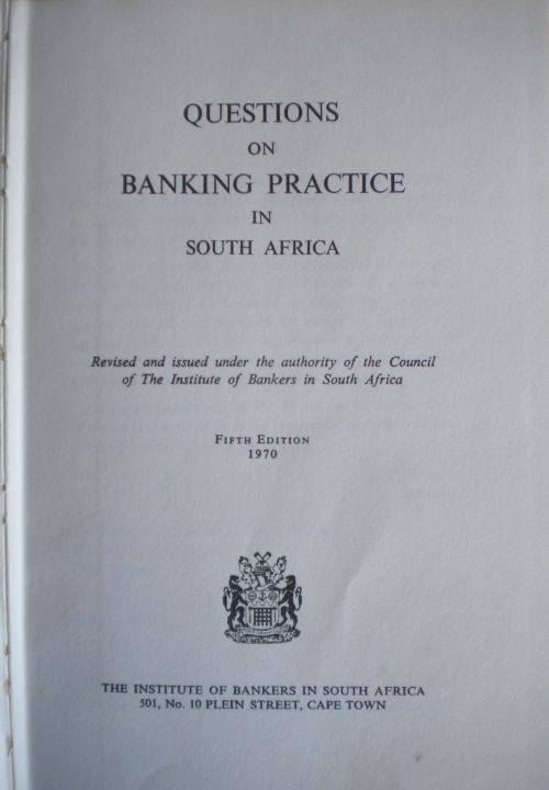 Questions on banking practice in South Africa. Good condition.