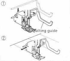 Note: Sewing at low or medium speed.Installation of quilting guide: