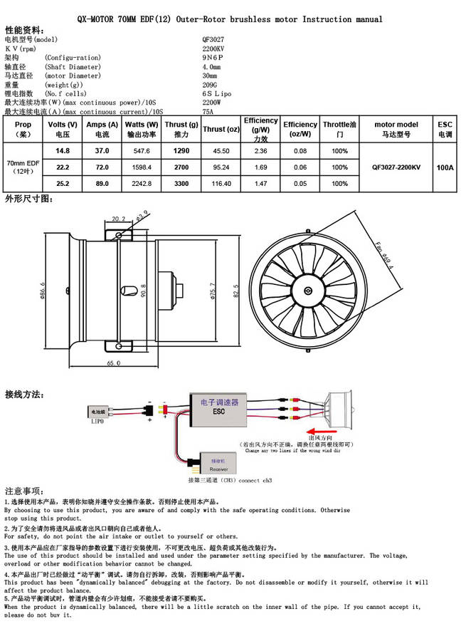 QX-MOTOR QF 3027 2200KV RC Brushless Motor High Performance For 70mm Ducted Fan RC Airplane Drone Pa