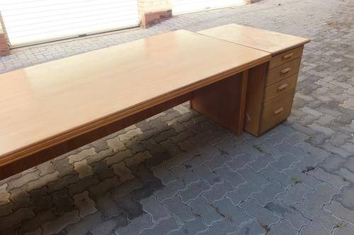 EXECUTIVE LARGE DESK WITH CREDENZA IINCLUDED IN GOOD CONDITION. COMES WITH A CREDENZA WHICH FITS ON THE SIDE OF THE TABLE. The dimensions are length 2 metres, width 98cm, height 75cm. The credenza is Height 75cm, width 45cm and depth 80cm with 4 drawers. CAN BE COLLECTED (Item 329)