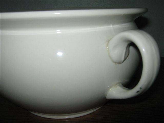 IMAGINE THIS PRISTENE WHITE CHAMBER POT PLANTED UP WITH AFRICAN VIOLETS OR FILLED WITH SPRING BULBS, OR JUST PLACE IT UNDER YOUR BED AND USE IT FOR WHAT IT WAS INTENDED FOR !!!!!!