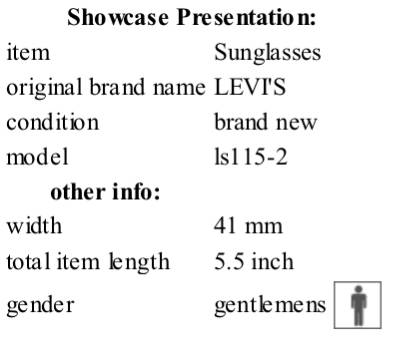 R1,950 - LEVIS LS115-2 Fashionable Brand New Sunglasses Length 5.5in