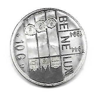 R1 AUCTION - 1944-1994 BEATRIX QUEEN OF NETHERLAND - BENELUX TREATY - 10 GULDEN SILVER COIN 0.720