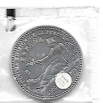 R1 AUCTION - 2001 JUAN CARLOS IY SOPHIA OF SPAIN - 2000 PESETAS SILVER COIN 0.9250 WT 18GR DIA