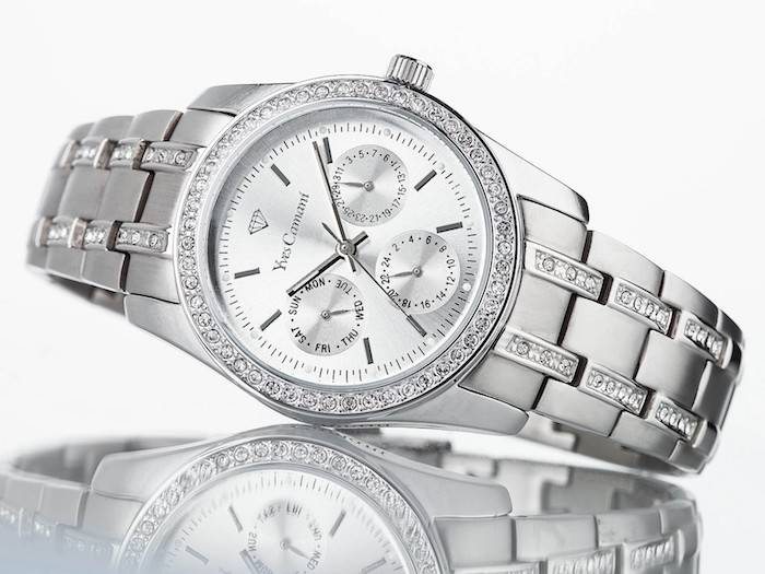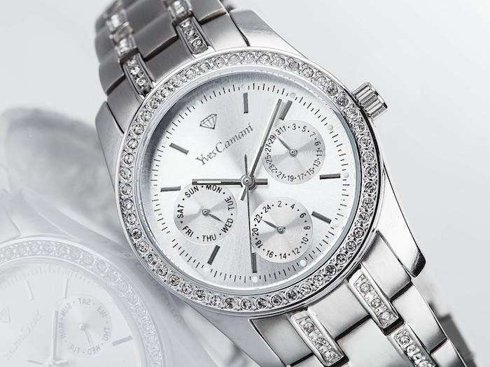 Yves Camani accomplished the quest for perfect balance between aesthetics, structure and function. They create timepieces of artful precision and beauty, thus laying the foundations of the Yves Camani watch making tradition. Set with countless cubic zirkonia crystals on both the casing and bracelet, the Tiberius is part watch, part captivating adornment. And in the midst of all this splendour, the dial displays both date and day of the week. The high-grade stainless steel casing houses a quality quartz movement. 34mm case diameter.