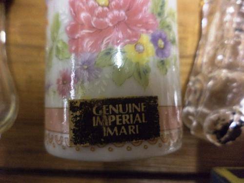 R1/NR! COLLECTION OF 6 PERFUME BOTTLES. ONE LID MISSING, ONE LID BROKEN (COULD BE REPAIRED). INLUDED ONE IMPERIAL IMARI BOTTLE - NOT COMPLETE.