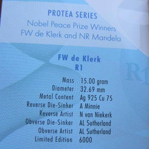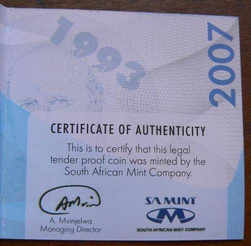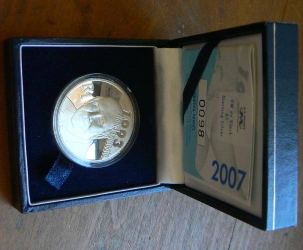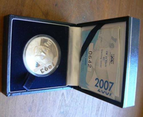 R1 silver proof 2007 De Klerk coin in SAM box with CoA - 2 available