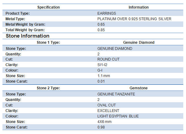 Gorgeous Genuine Blue Tanzanite, diamond and sterling silver (platinum plated) earrings up for grabs today. Specs below.
