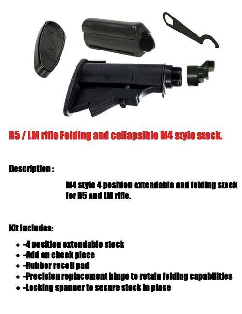 R5 / LM FOLDING AND COLLAPSIBLE M4 STYLE STOCK 4 POSITION EXTENDABLE BLACK STOCK KIT