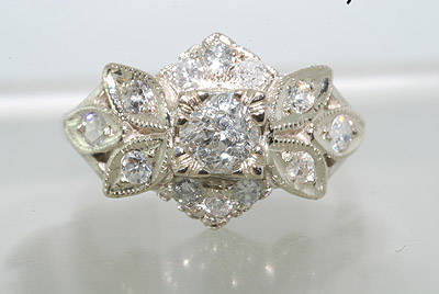 R50000 - OUTSTANDING .68CT FLOWER DESIGN ANTIQUE STYLE DIAMOND RING