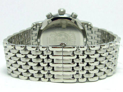 DIAL: Off White & Light Grey Dial with Sub-Dials. Silver Hour & Minute Hands & Stainless Steel "ring" with Black Numerics. Stop Watch Section on Left of Dial.