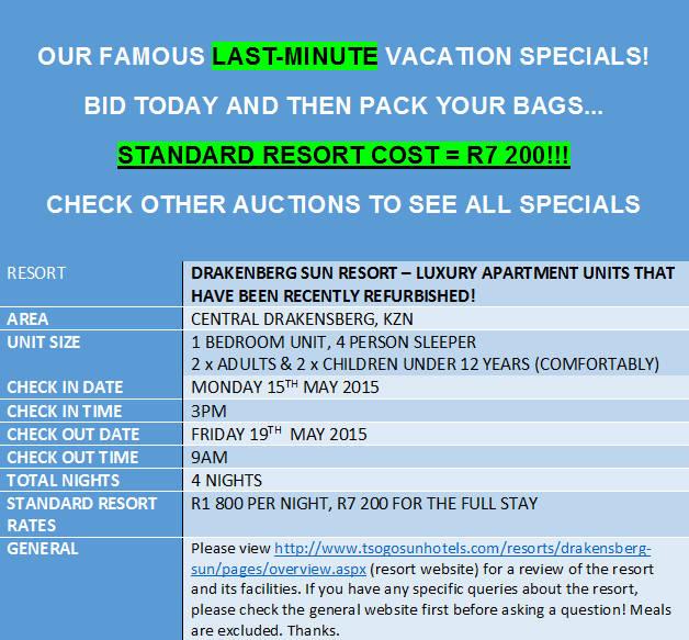 2 OF 3 DRAKENSBERG SUN AUCTIONS ON OFFER