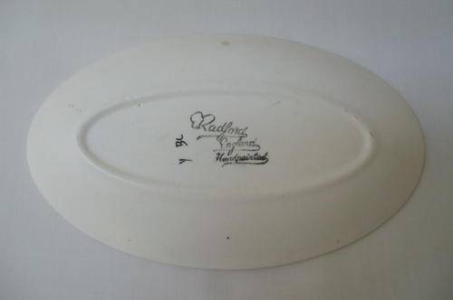 A matt glazed ivory ceramic small oval plate, hand-painted with dusky pink,