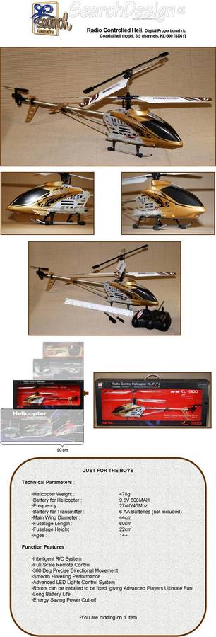 Radio Controlled Heli. Digital Proportional r/c Coaxial heli model. 3.5 channels. KL-500 [SD41]