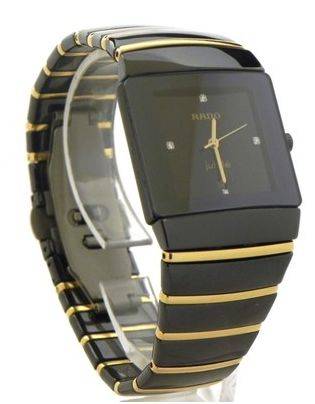 GENDER GENTS/UNISEX - CASE & BEZEL HIGH TECH CERAMIC - BRACELET: HIGH TECH CERAMIC & GOLD - CROWN FLUTED - DIAL BLACK - HANDS GOLD - HR MARKERS CRYSTAL/DIAMONDS - CASE 30mm THICKNESS 7mm - LENGTH +- 20mm - WEIGHT 84 gram - RADO BOX AND PAPERS - DISPLAY ITEM