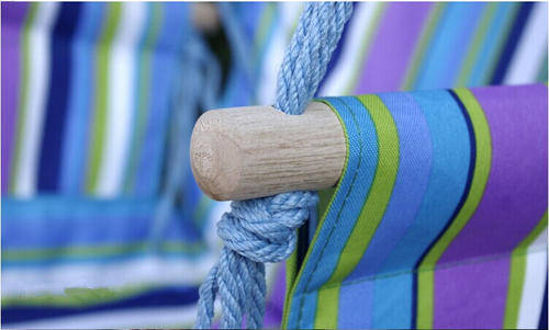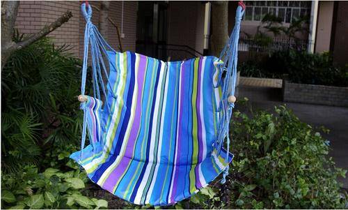 Sit back, relax and cozy in pure comfort. Our deluxe hanging sky swing chair is attractive and comfortable addition to any porch, tree limb, or overhang. Kick your feet up and relax in this 100% cotton fabric rainbow swing chair that includes a 40" long hardwood spreader bar.