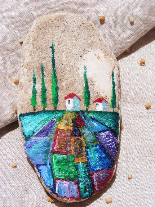 Original Mini Rock Painting "Rainbow Landscape" Oil on natural stone.