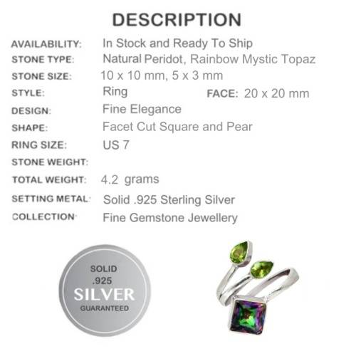 HANDMADE NATURAL RAINBOW MYSTIC TOPAZ AND PERIDOT RING SIZE 7 / N