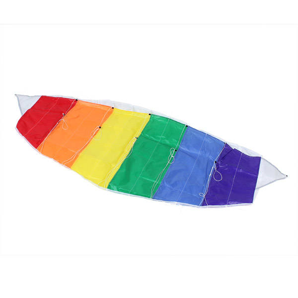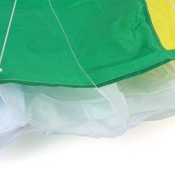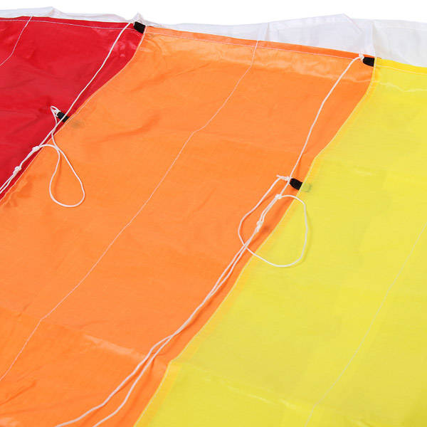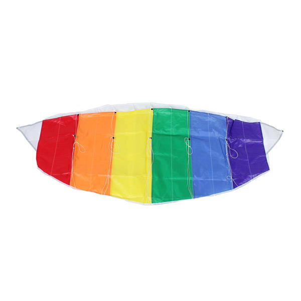 Specifications: Color:As the pictures show Material:Nyloncloth Size:120*56CM Weight:125g Features: 1.Dual line control, prevent the kite fly away while one of the line is broken, and there will be more entertainment 2.Frameless design, easy to fold up and open 3.Parachute sytle with rainbow pattern, quite good looking when it flying in the sky 4.With an extra storage bag, convenient to carry 5.It flies steadily in the breeze, brings you more fun in life 6.Suitable for flying in the open area, such as the beach, grasslands and other places